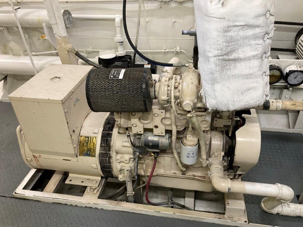 Genset(s): | Vessel is equipped with a single Marathon Electric model 361PSL1602r 50 KW 208 VAC, 3 phase, 60 Hertz generator driven by a Cummins model 4BT3. Vessel is also equipped with a single Cummins model 6CTA8 driving the Trawl Winches | |||