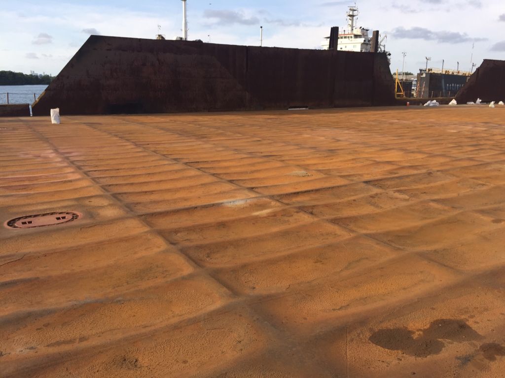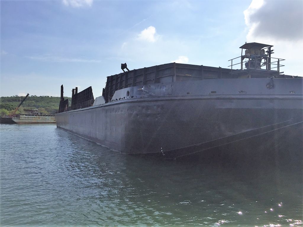 Type : Deck Barge with Bin Walls Year Built : 2010 : 2400 Class/Classification : Rina GRT / NRT : 3105 / 931 Length Overall : 300 feet (91.5 meters) Breadth : 80 feet (24.38 meters) Depth : 18 feet (5.5 meters) Max Draft : 14.13 feet (4.307 meters) Approximate Light Ship Weight : 1205 LT (1224.7 Metric Tons) Approximate Cargo Capacity at Max Load Line 7361 LT (7480 Metric Tons) Approximate Deck Loading : 2000 pounds/square foot (10 metric tons/square meter) Approximate Transverse Bulkhead : 8 Longitudinal Bulkheads