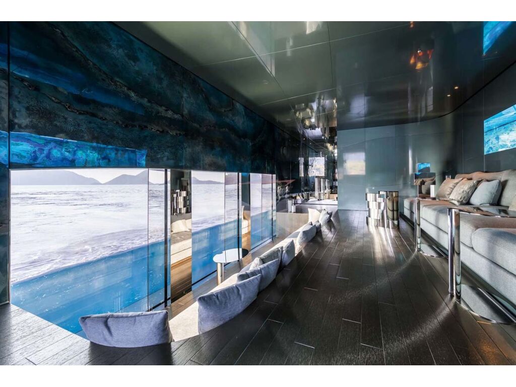 Special Features Include: She boasts fantastic four decks for her guests comprised of sundeck, bridge deck, private owners deck, main deck connected with an elevator. Savannah offers amenities that are not available on any yacht built until she was delivered including an underwater lounge/cinema with a gigantic thick glass where her guests can watch below sea surface, large swimming pool based aft, beach club, Spa, Jacuzzi on the sun deck… Other amenities on board this super yacht include a fully-equipped gym. | |