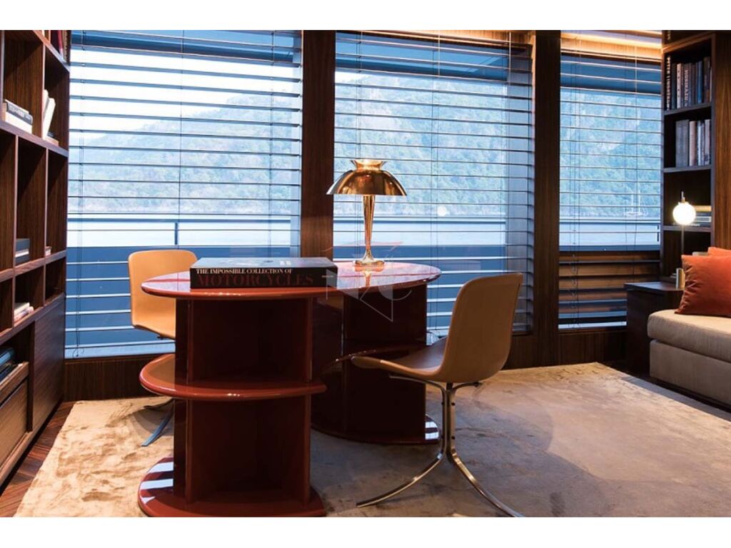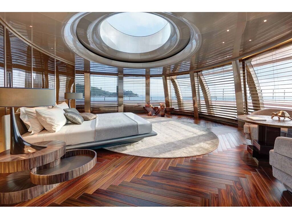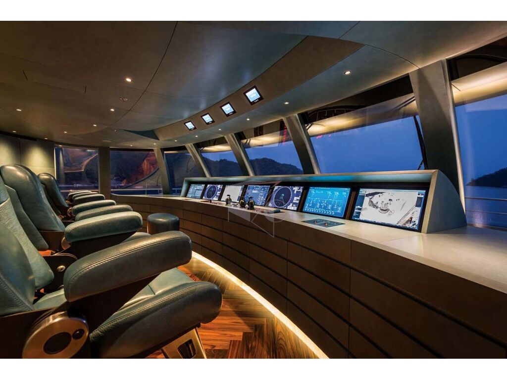 She accommodates up to twelve guests in the four double and two twin cabins. Her full beam master suite is based on the upper deck and features a king sized bed with spectacular panoramic views of her cruising destination directly from the bed, large en-suite with the shower and bathtub, an office, walk in wardrobes, open air lounge in the aft. Main deck houses spacious salon with beautiful lounging areas, formal dining table in the aft and guests accommodation. VIP stateroom with a king sized bed, foldable balcony, lounge and spacious en-suite with shower and separate bathtub, while her double staterooms offers a queen sized beds and en-suites with the showers. Two twin cabins are equipped with two single beds and en-suites with the rain showers. Both twin cabins are convertible into a double cabins if required by her guests.