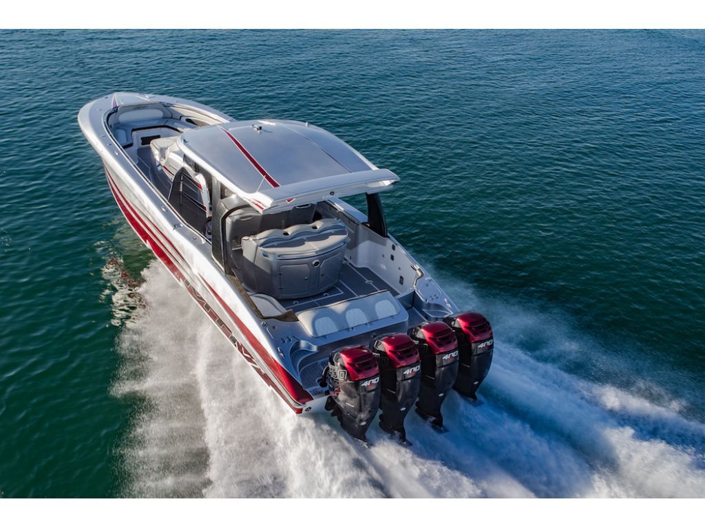MTI's stepped Deep V hull design ventilates the hull and traps a boundary layer of air under the hull and between the twin keels. With the added bow flare, the MTI-V 42 is extremely dry riding even in extreme conditions in both head and following seas.